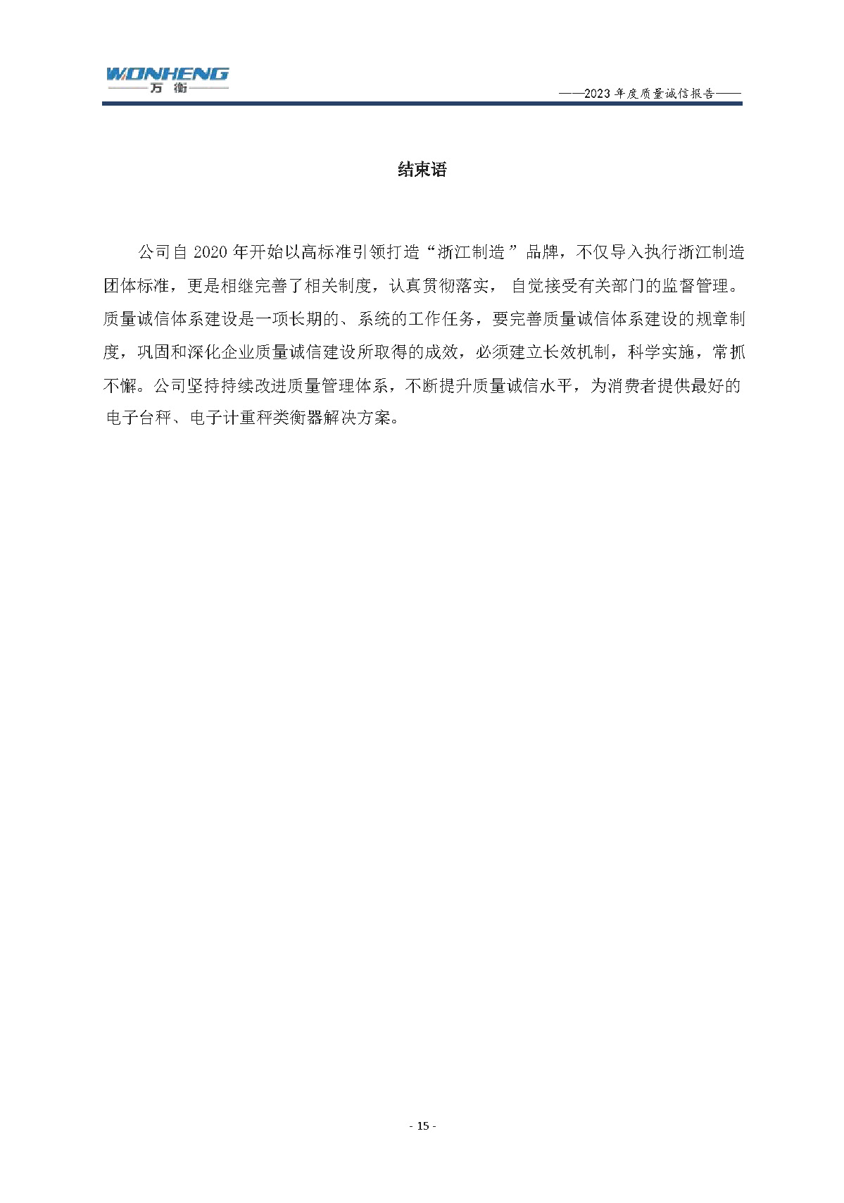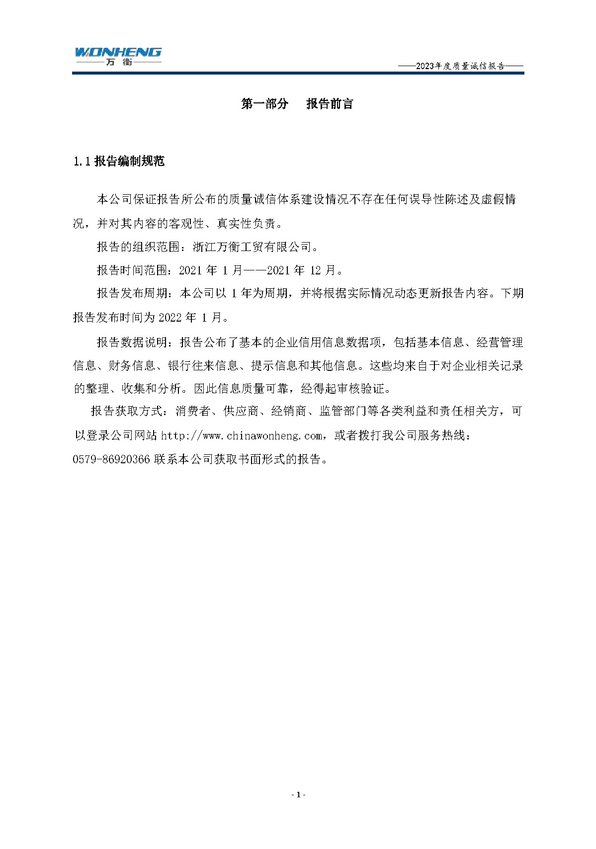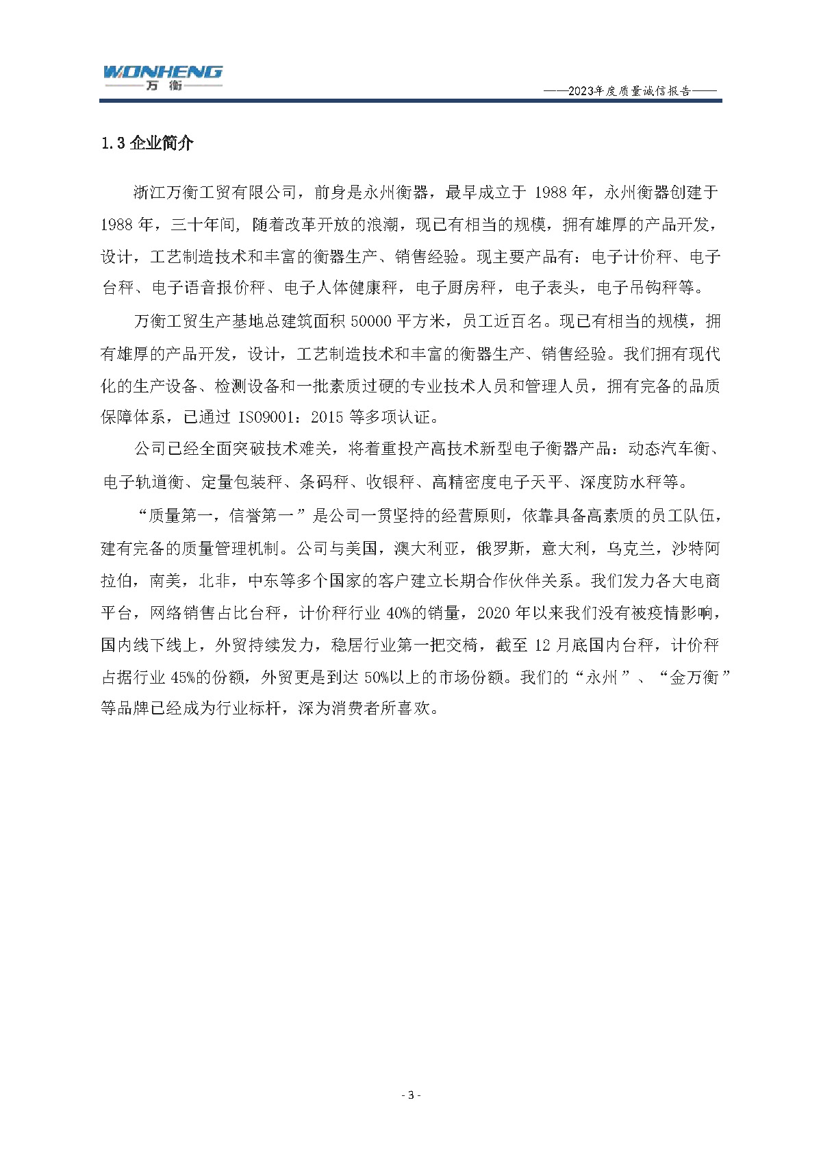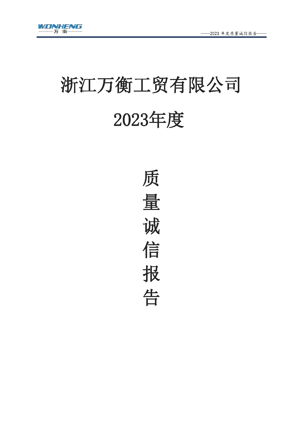 浙江萬衡工貿(mào)有限公司2023年度質(zhì)量誠信報告