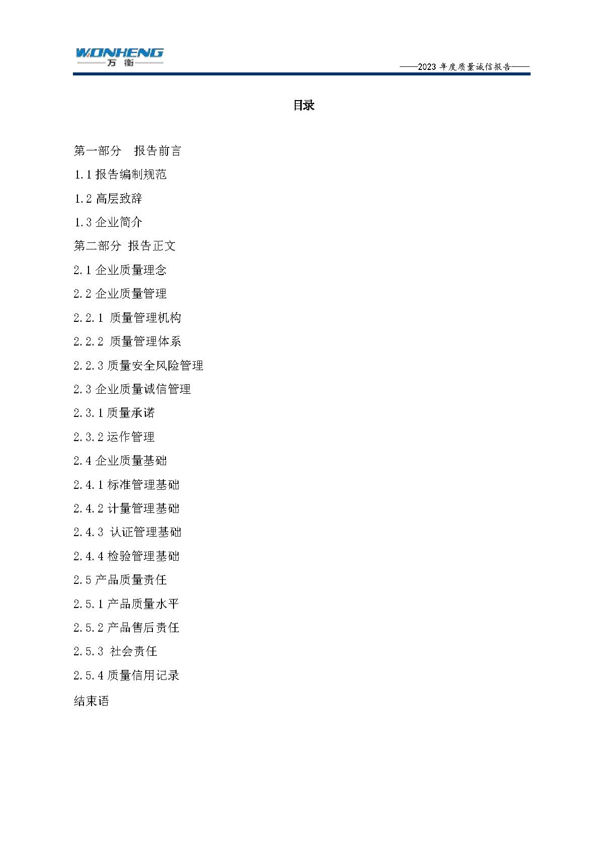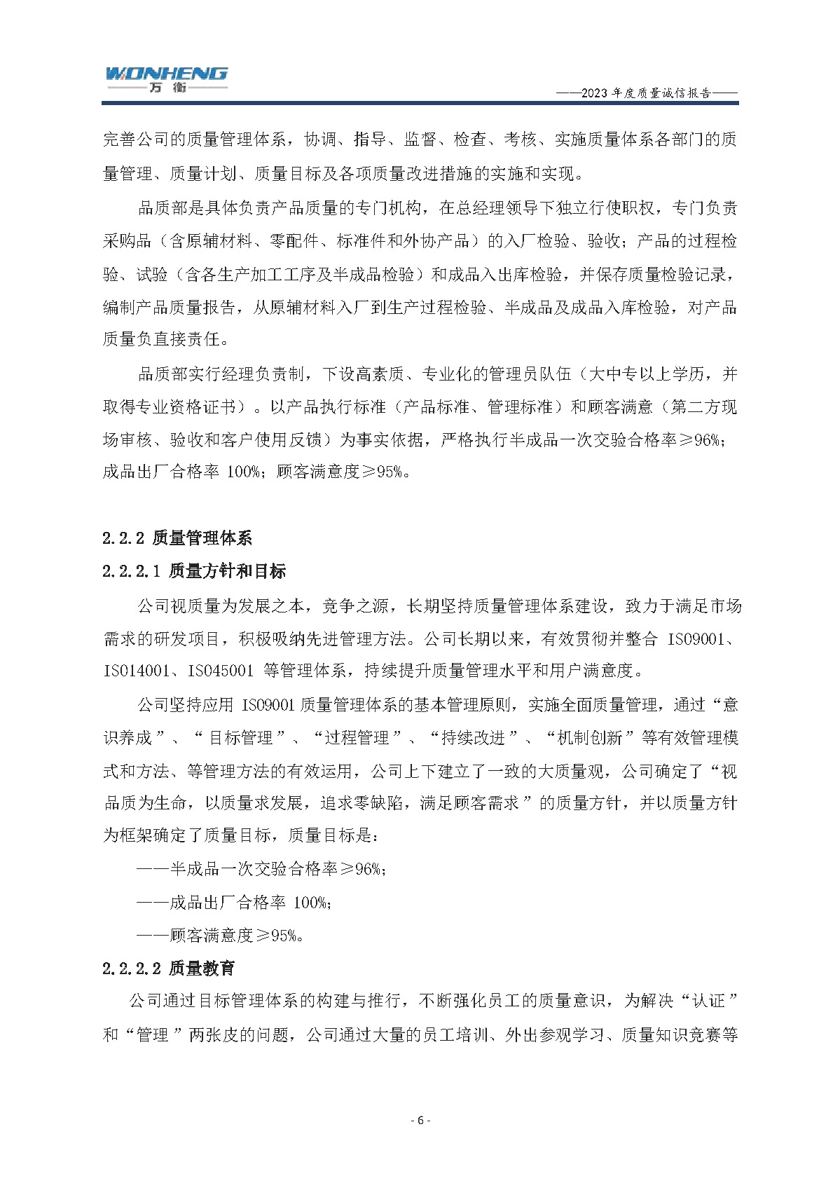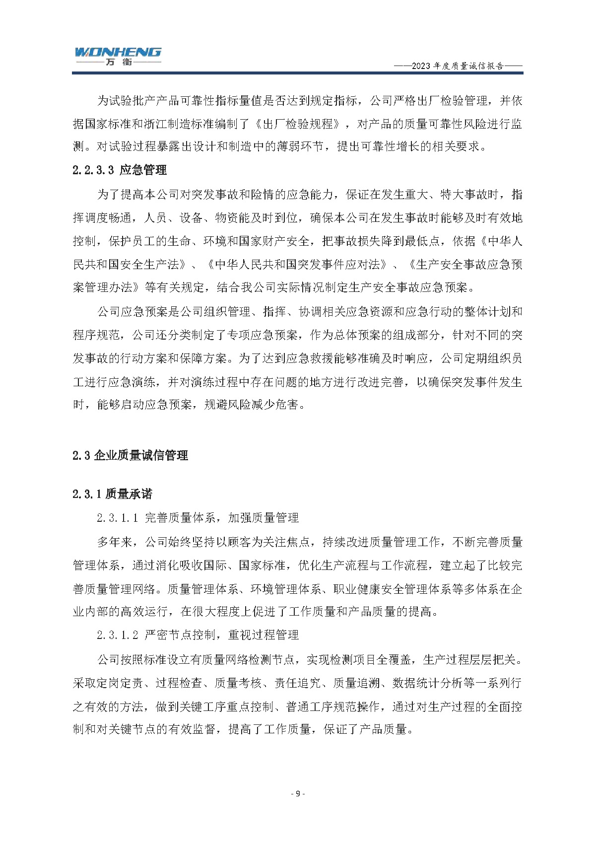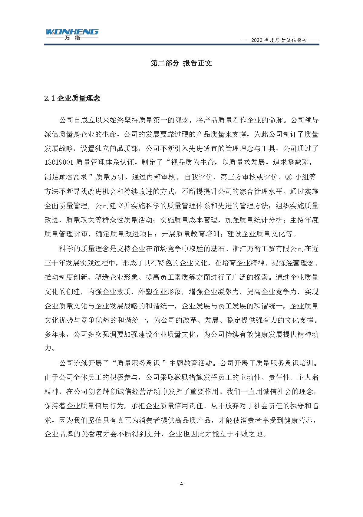 浙江萬衡工貿(mào)有限公司2023年度質(zhì)量誠信報告