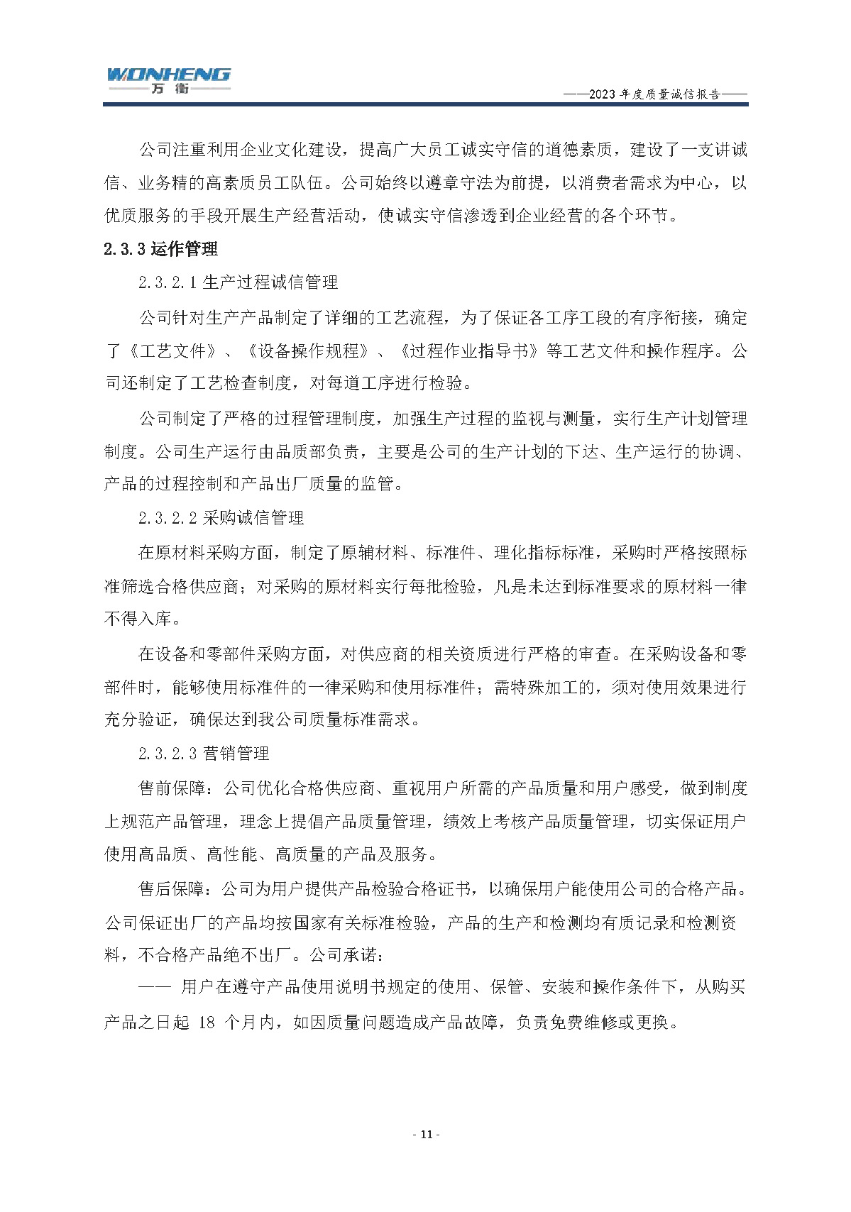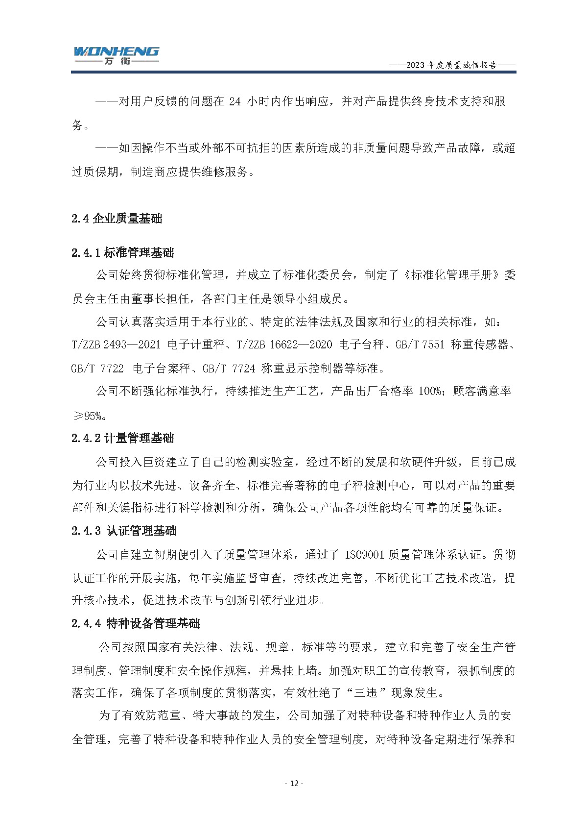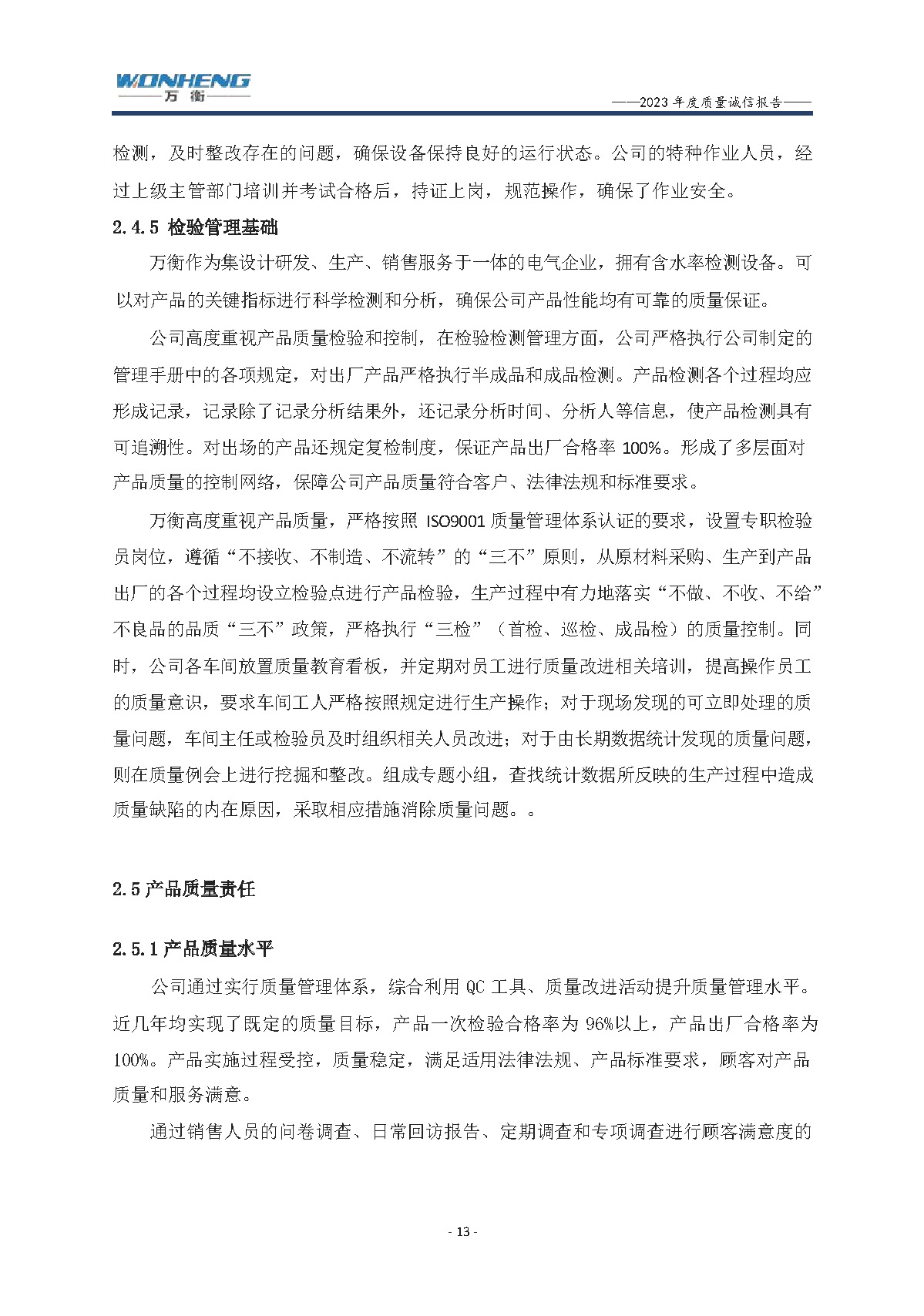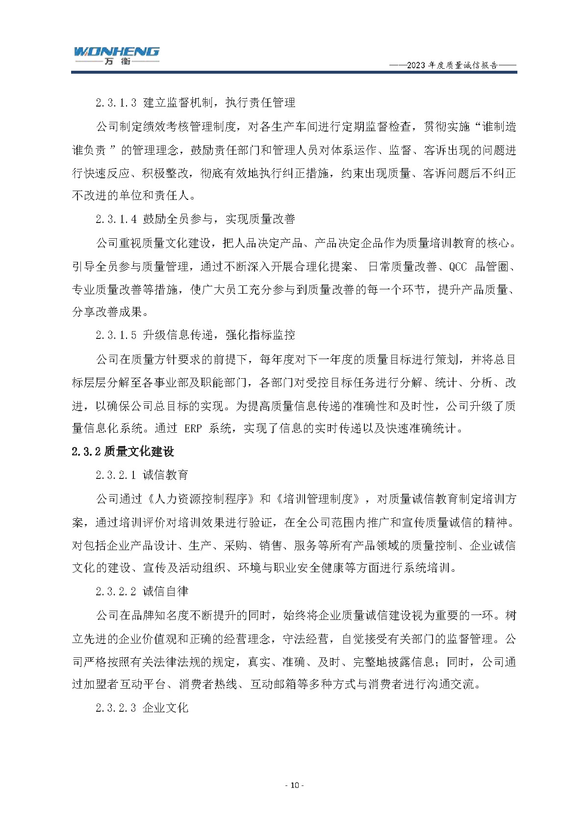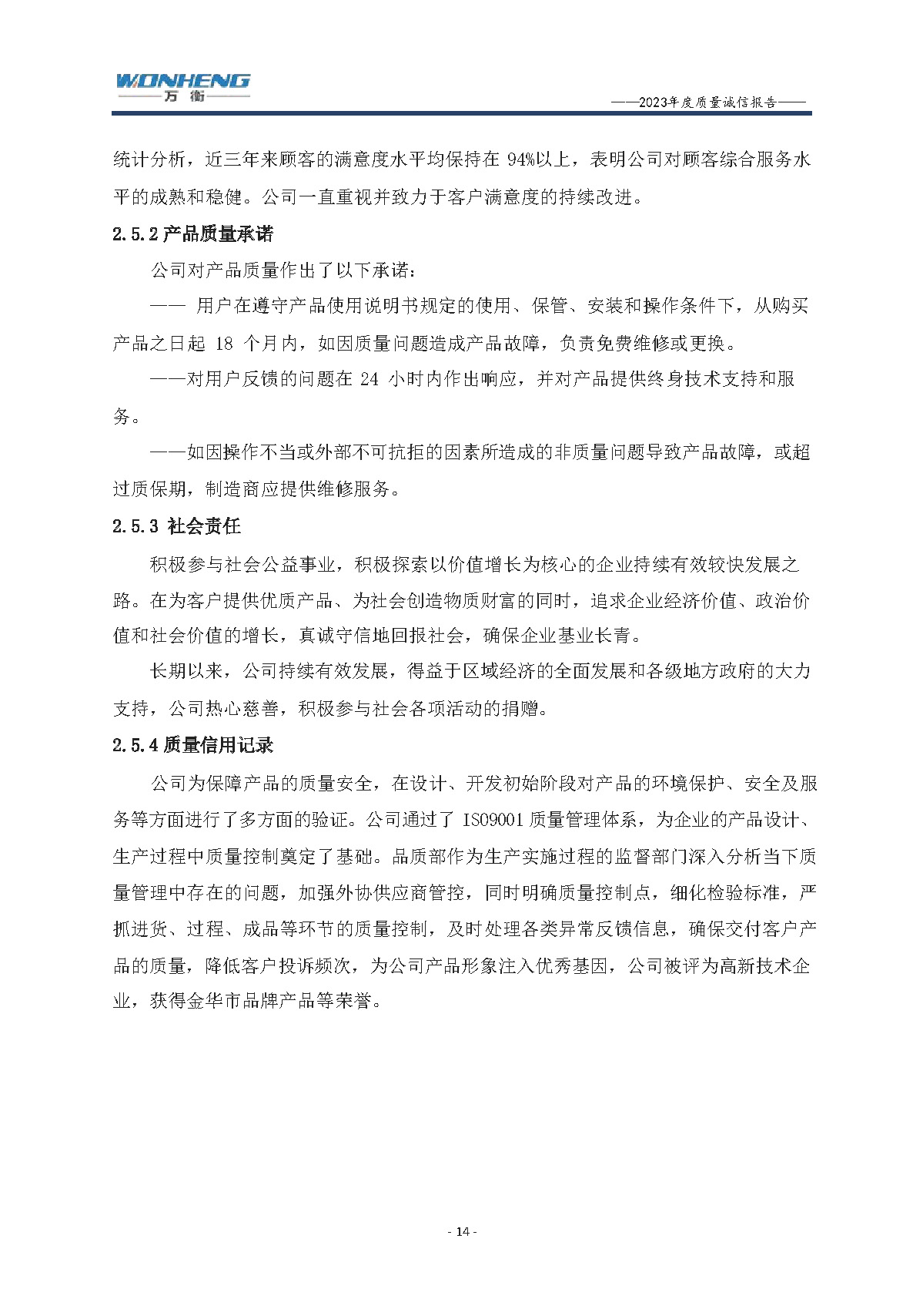 浙江萬衡工貿(mào)有限公司2023年度質(zhì)量誠信報告