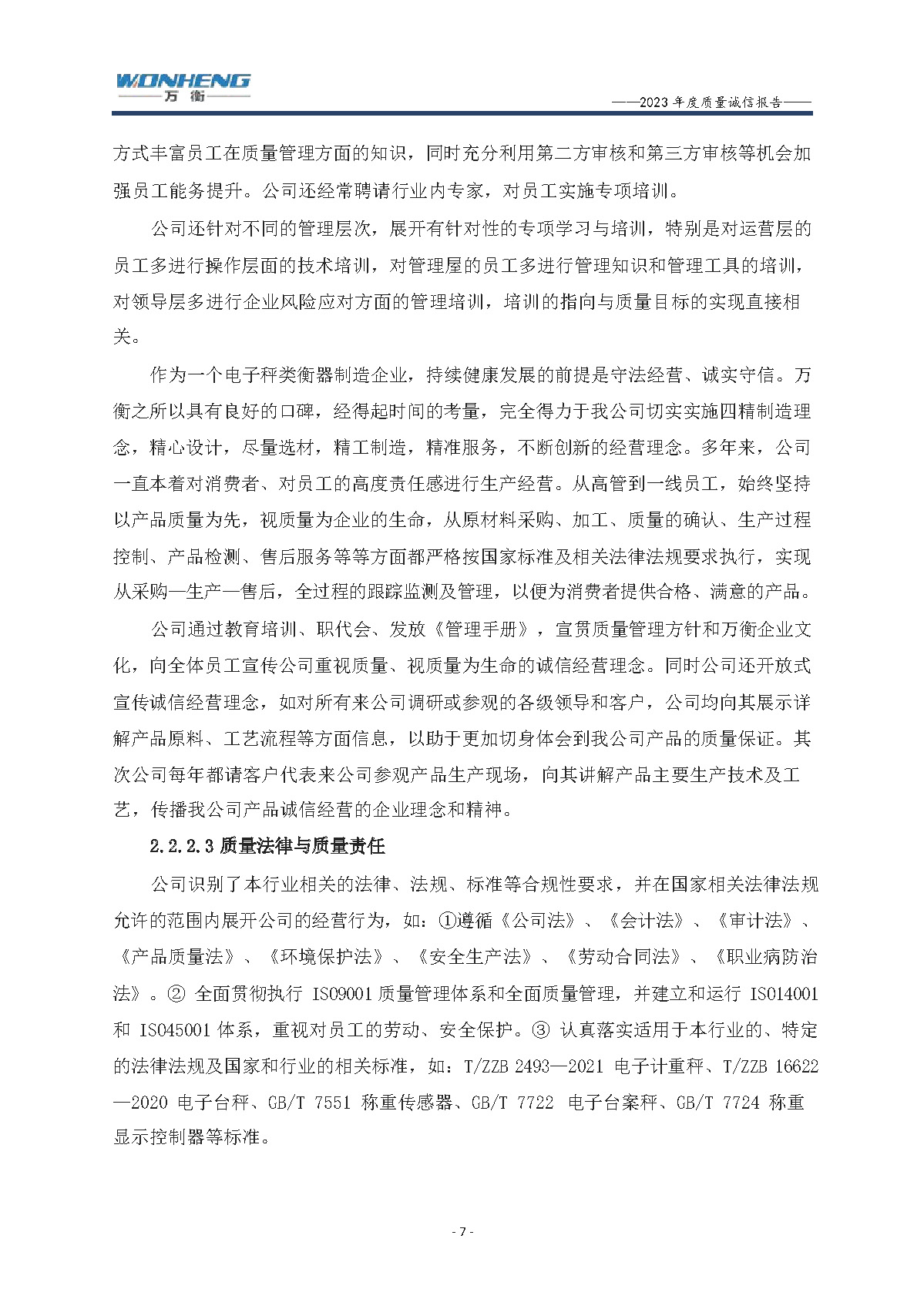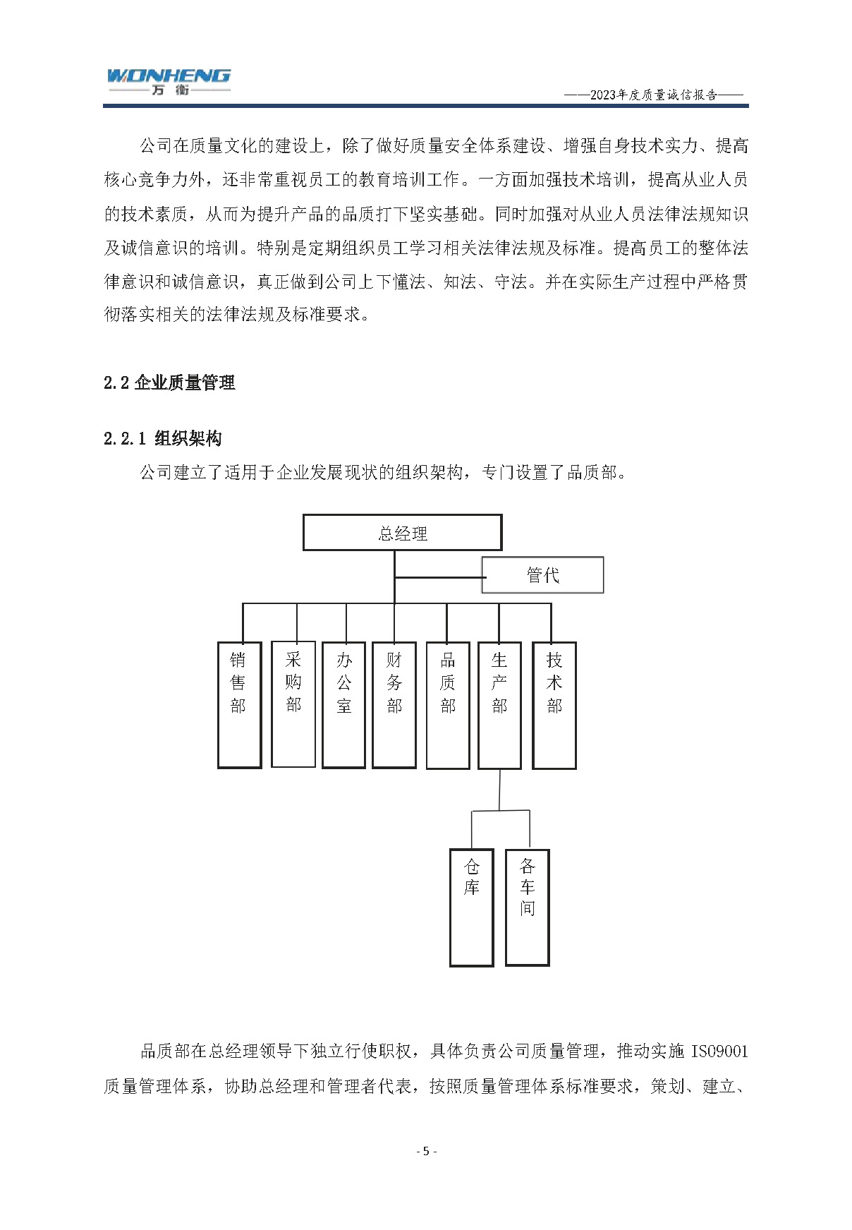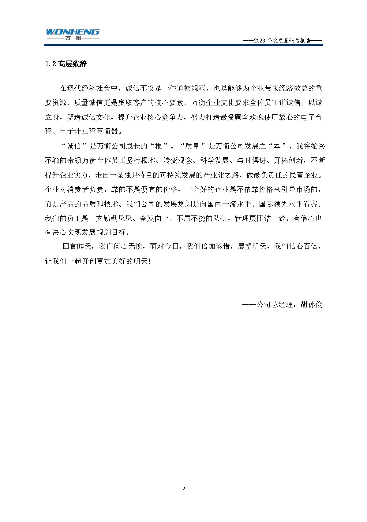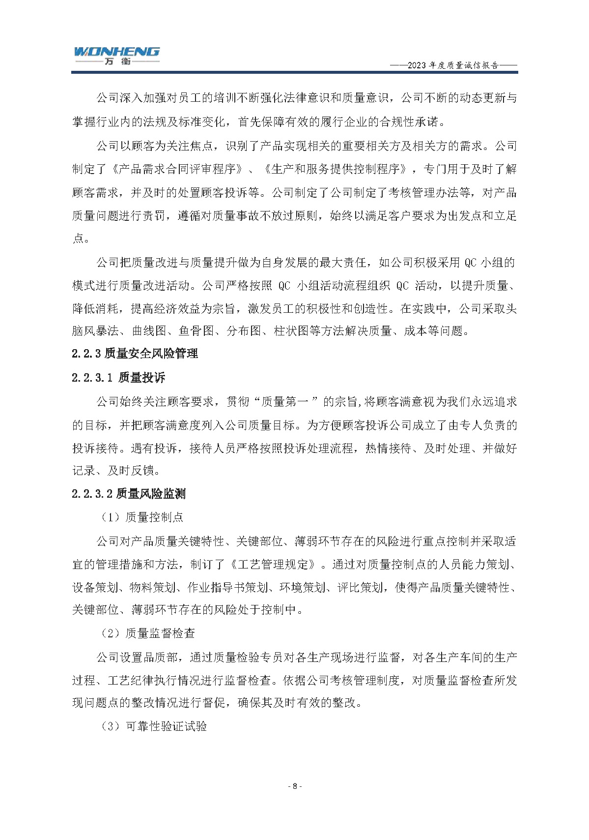 浙江萬衡工貿(mào)有限公司2023年度質(zhì)量誠信報告
